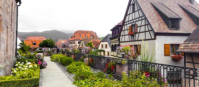 Op 500 kilometer van Brussel, midden in de wijngaarden, bevindt zich het prachtige bloemendorp Bergheim. Wat opvalt is de rust en vooral de typische kleurrijke vakwerkhuisjes. We laden onze bagage uit in het Hôtel la Cour du Bailli en bespreken het vervolg van deze leuke trip bij een heerlijke pinot gris (geproduceerd door het familiebedrijf) en een lekker stukje traditionele Flammkuchen. Wat staat er op het programma? Een ochtendwandeling langs de stadsmuren, zodat we een goed beeld krijgen van de schoonheid van deze plek, een ontspannende massage, en om de dag af te sluiten een wijnfeest met lokale gastronomische specialiteiten in Ribeauvillé. De volgende dag gaan we wijn proeven op het wijndomein Halbeisen en de streek verder verkennen. Van op het kasteel van Haut-Koenigsbourg hebben we een adembenemend zicht op de vallei.